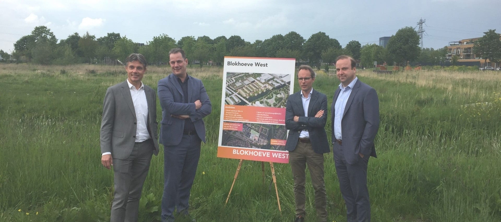 Hoeverijk. Dat is de naam voor de ontwikkeling van het laatste deel van de wijk Blokhoeve in Nieuwegein. Dinsdag 7 mei jl. tekenden de gemeente Nieuwegein, ontwikkelaar VOF Trebbe / Lunee en corporatie Jutphaas Wonen een overeenkomst. Nu kunnen de ideeën voor woningen, een supermarkt, een klim- en bergsportcentrum, horeca, fitnesscentrum en groen verder worden uitgewerkt.