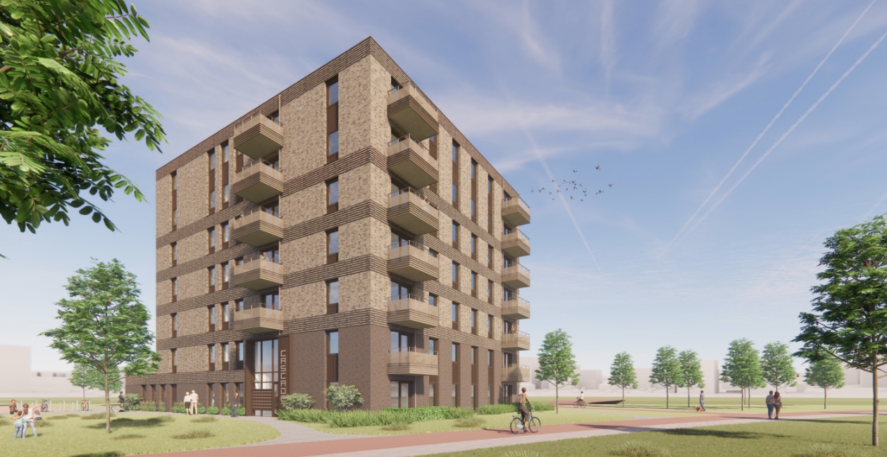 Het nieuwe appartementencomplex is ontworpen door Beltman Architecten. Stoere baksteenarchitectuur kenmerkt de uitstraling van dit nieuwe gebouw. De appartementen worden aangesloten op stadsverwarming. Ook is er aandacht voor natuurinclusiviteit en klimaatadaptiviteit, door onder meer groene daken met waterretentie.