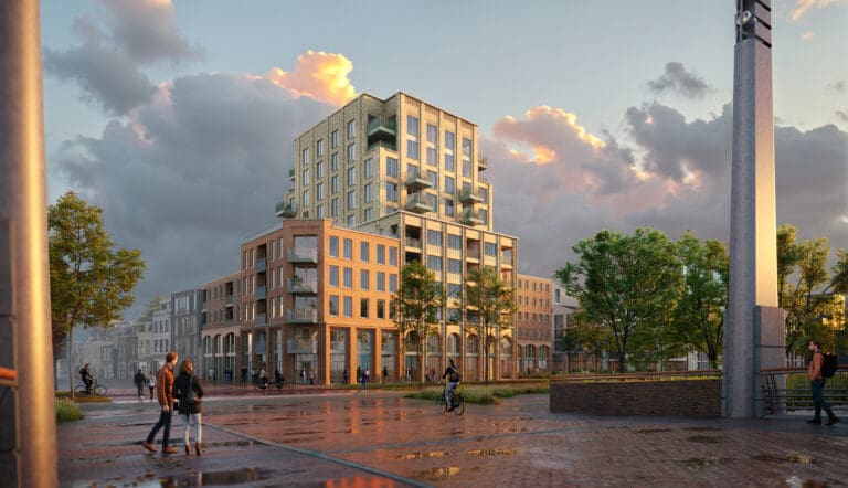 Ontwikkelcombinatie Waaijer – Trebbe realiseert met Dordts Geluk een levendige en groene woonomgeving. Martin Beukeboom, vertelt namens de ontwikkelcombinatie: “Op deze unieke locatie tussen historie en moderniteit realiseren we een project dat de naam ‘Dordts Geluk’ volledig eer aandoet. Met 142 duurzame appartementen voor verschillende doelgroepen en een groene, autoluwe omgeving creëren we geluk dat voor iedereen bereikbaar is – midden in het hart van Dordrecht.” Rond een gemeenschappelijk hof en het nieuwe Hellingenplein komen duurzame appartementen voor starters, gezinnen en senioren. De architectuur sluit aan bij de 19e-eeuwse Dordtse binnenstad met bakstenen gevels en herkenbare panden. Bewoners ontmoeten elkaar in de gezamenlijke tuin, op dakterrassen en in de levendige plint. Zo ontstaat een gezonde, inclusieve gemeenschap die bijdraagt aan geluk. Het ontwerp is van de architectenbureaus FARO, Juli Ontwerpt en Bureau van Eig in samenwerking met OKRA en Movares.