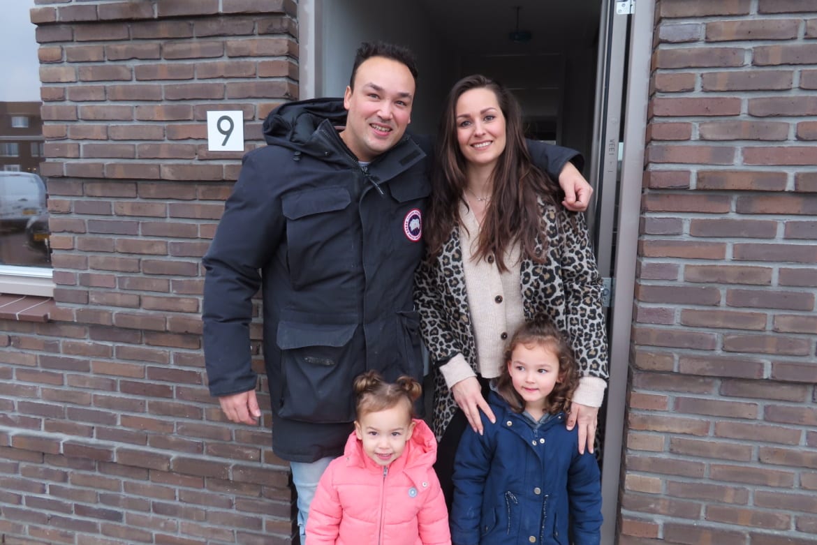 “Wij zijn hartstikke blij met onze woning.” Aan het woord zijn Sylvia en Stash die zojuist de sleutels van hun hoekwoning hebben ontvangen. “Na 13 jaar op de flat en met twee dochters werd het tijd voor een grotere woning. Een tuin was toch onze grote wens met opgroeiende kinderen. Zij kunnen straks naar de nieuwe basisschool in Hoef en Haag; ideaal en lekker dichtbij. We stonden al 12 jaar ingeschreven, wilden verhuizen en toen kwam ‘De Erven’ voorbij. We hebben bewust op deze woning gereageerd, want daarop maakten we de meeste kans. Dat is gelukt! Komende weken klussen, verhuizen en dan gaan wij met ons gezin een mooie toekomst tegemoet in Hoef en Haag.”
