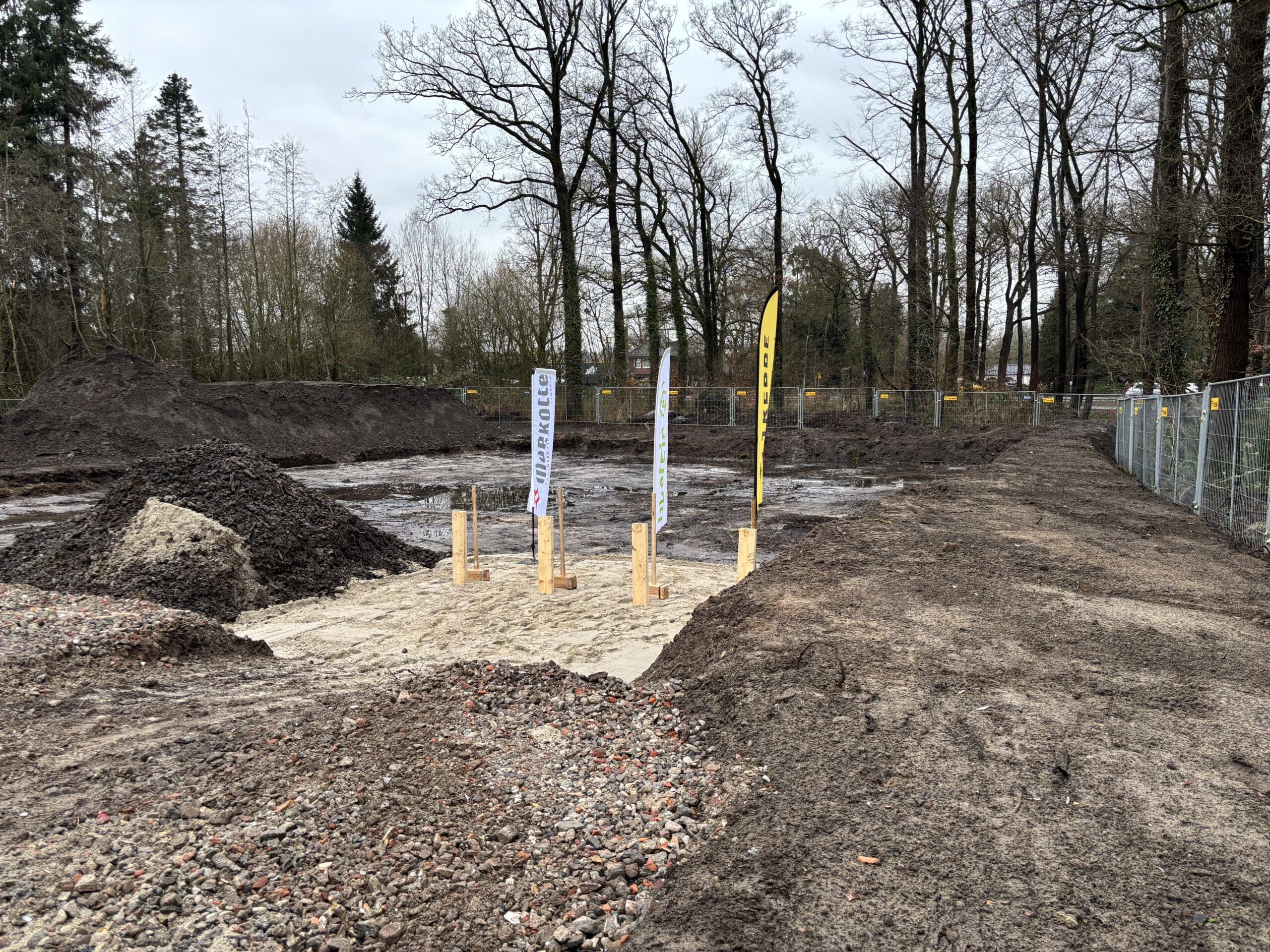 Gisteren is de bouw gestart van de uitbreiding van zorglocatie Bruggerbosch in Enschede. Heidi Pot – Witbreuk, bestuurder van Liberein, een toekomstig bewoonster, Peter de Jong, commercieel directeur Moekotte en Jeroen Gietema, directeur bij Trebbe sloegen symbolisch de eerste paaltjes. Een bijzonder moment voor alle betrokkenen, want met deze uitbreiding ontstaat een toekomstbestendig thuis voor mensen met onder andere Korsakov en Parkinson.