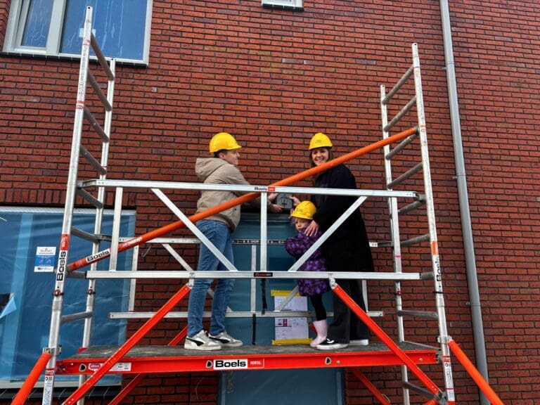 “Leuk dat ze samen deze sluitsteen mogen plaatsen. Dit is een mooie gelegenheid om ze voor te bereiden op de verhuizing. De woningen zijn duurzaam en goed geïsoleerd. Fijn, zo’n nieuwe start in een nieuw huis.”