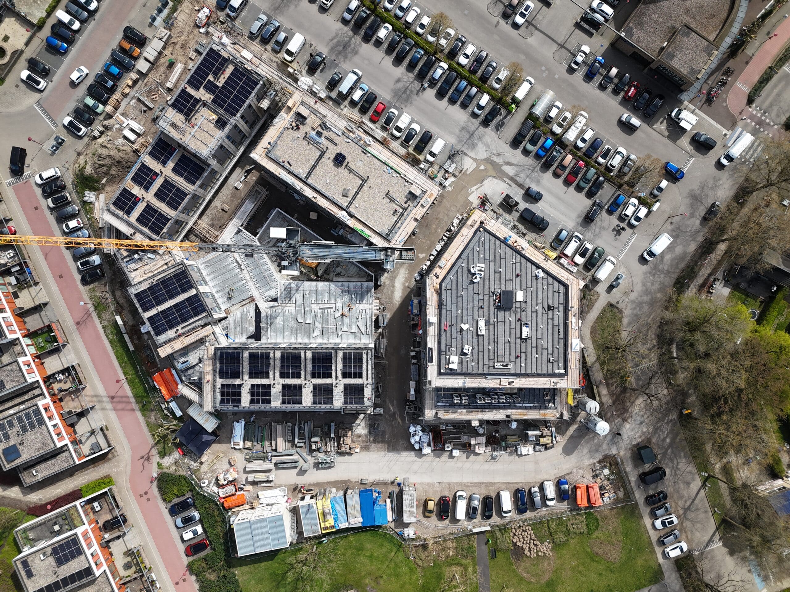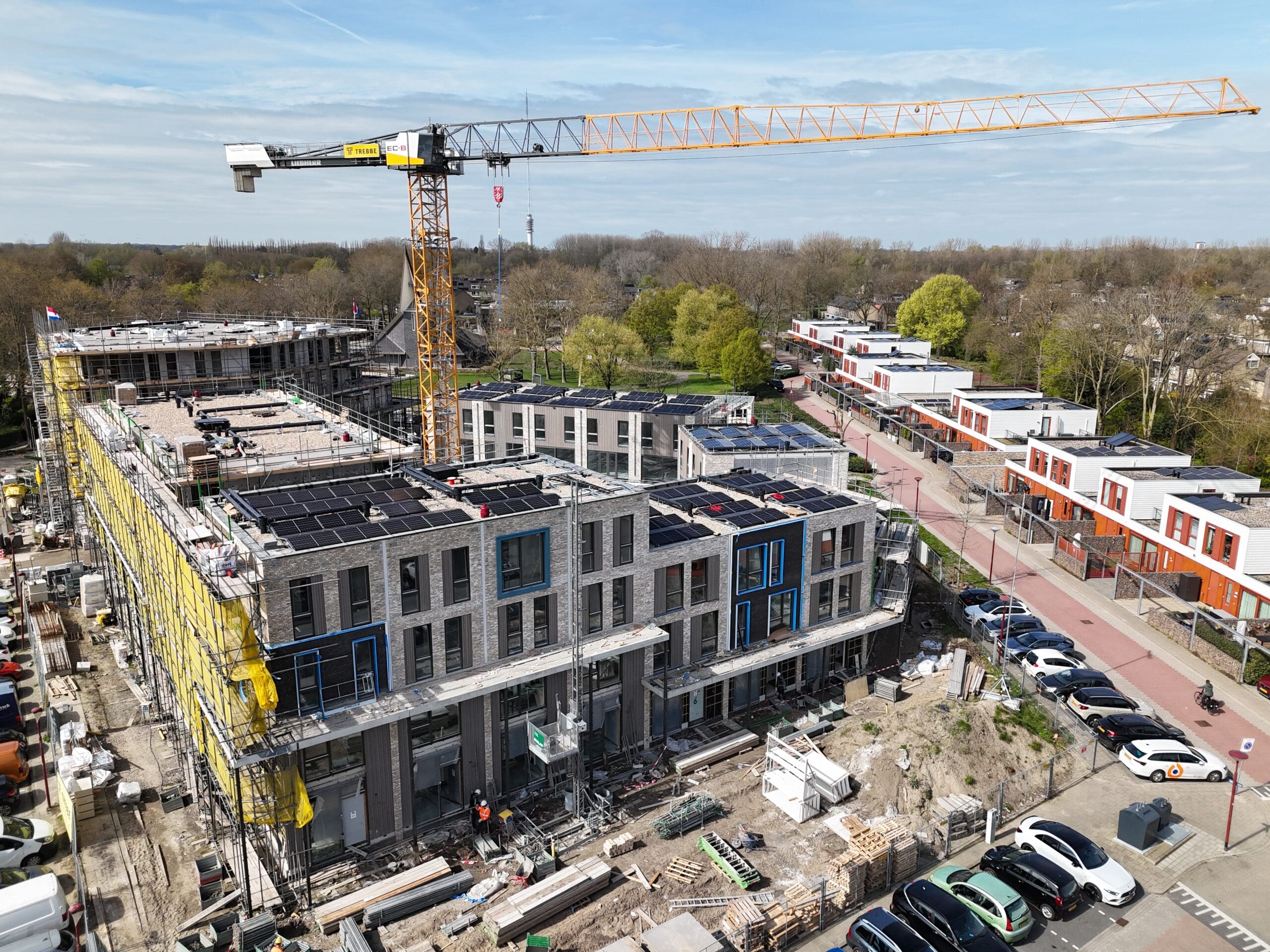 Met het hoogste punt bereikt ligt de bouw op schema. De komende periode staat in het teken van de afbouw. Dit betekent dat er hard gewerkt wordt in de woningen en de appartementen. Zo worden binnenwanden geplaatst, het sanitair en tegelwerk wordt aangebracht, het metselwerk wordt afgerond én er wordt een start gemaakt met het aanleggen van de binnentuin.