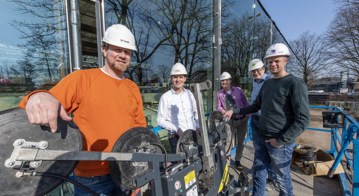 Op de foto v.l.n.r.: Ruben Nijhuis (Trebbe), Rob Nengerman (UT), David Korringa (UT), René Evers (Dura Vermeer), Rico Abcouwer (Croonwolter&dros).