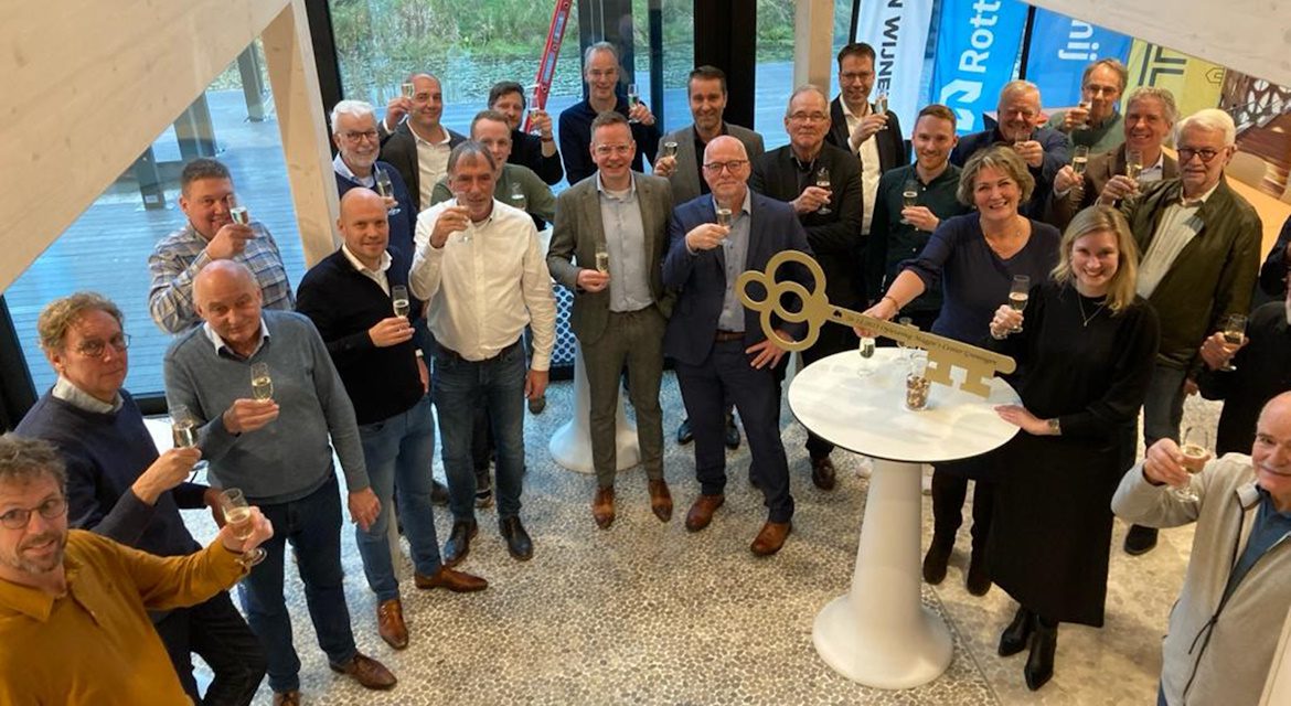 Amper tien maanden na de start van de bouw dit voorjaar, is Maggie’s Center in Groningen opgeleverd! Afgelopen woensdag 20 december werd het gebouw aan het bestuur van Maggie’s Center overgedragen. Namens de Bouwcombinatie Maggie’s Center overhandigde Geert Klein Lebbink, adjunct-directeur bij Trebbe, een symbolische sleutel aan Harm Post, voorzitter van Maggie’s Center en Anneke Tjassing, centrumdirecteur bij Maggies Center. Maggie’s Center ligt op het terrein van het UMCG in Groningen.