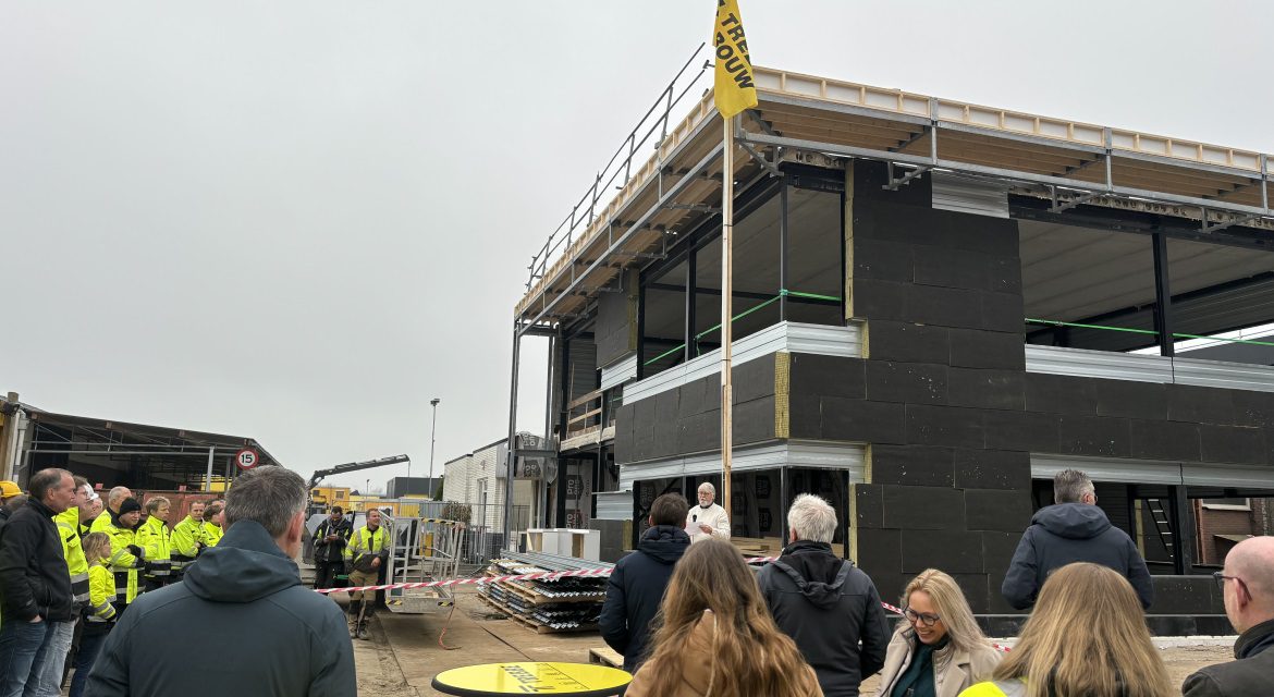 Na een bouwtijd van een kleine drie maanden is het hoogste punt bereikt in de nieuwbouw van het nieuwe kantoor aan de Kanaalstraat Enschede. Deze belangrijke mijlpaal werd gevierd volgens goed gebruik en de traditie op de bouwplaats. De vlag werd in top gehesen en er was een snack voor de medewerkers van de Trebbe-vestigingen in Enschede en de vakmensen op de bouwplaats.