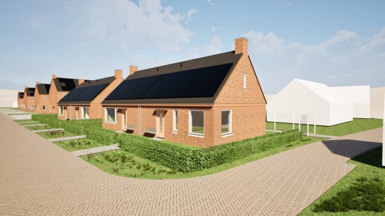 ZOFA Architecten ontwierp woningen met afwisselend metselwerk die goed passen in het Groningse karakter van het dorp. Met aandacht voor leefbaarheid en groen, én voor een slimme buurtindeling: door de samenwerking tussen gemeente, NCG en Lefier passen er zeven extra huurwoningen in het plan, met meer ruimte voor groen, parkeren en waterberging.