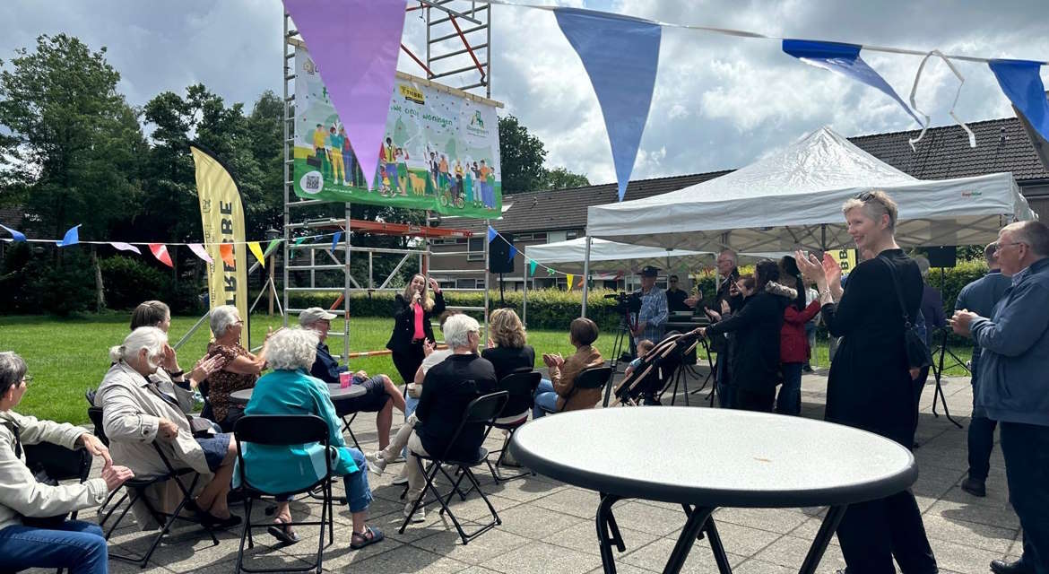 Onthulling bouwhekdoek luidt woningverbetering De Kwartieren Bilthoven in