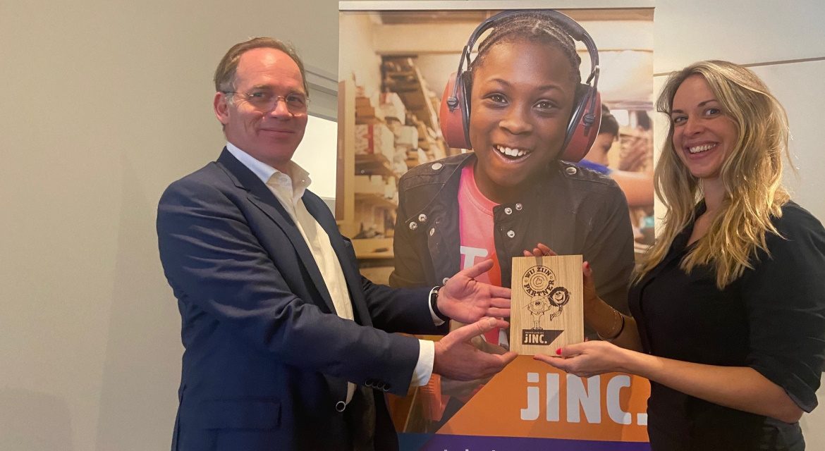 Onlangs gingen JINC en Trebbe een partnerschap aan. Om dit te bekrachtigen reikte Sarah Euwema, vestigingsmanager JINC Groningen het JINC Partnerbord uit aan Marinus den Harder, directeur bij Trebbe. Met dit partnerschap wil Trebbe meewerken aan de doelstelling om kinderen en jongeren uit wijken met een sociaaleconomische achterstand aan een eerlijke kans op de arbeidsmarkt te helpen. Concreet betekent dit dat Trebbe verschillende bliksemstages voor primair en voortgezet onderwijs organiseert en deelneemt aan diverse andere initiatieven van JINC.
