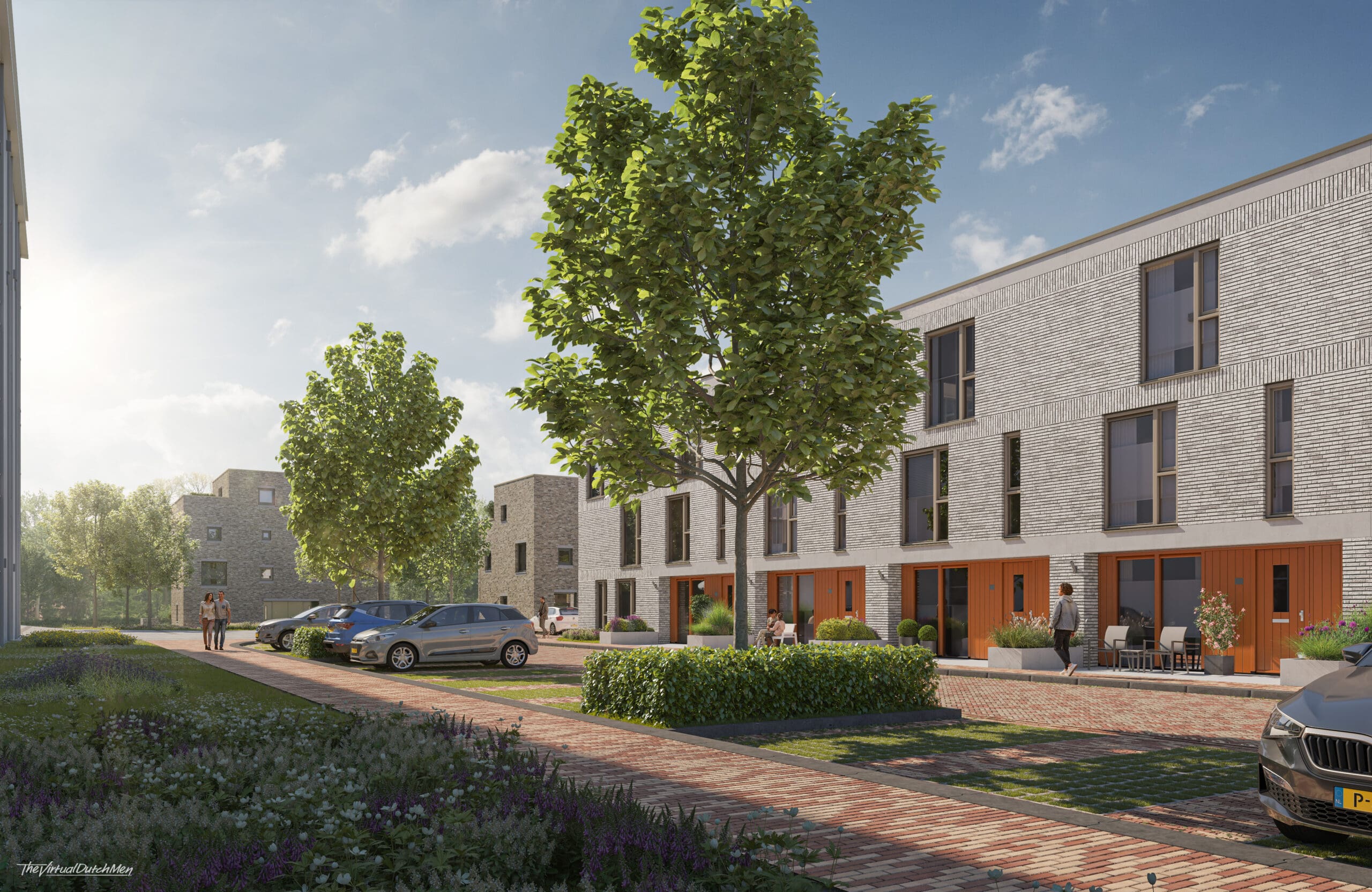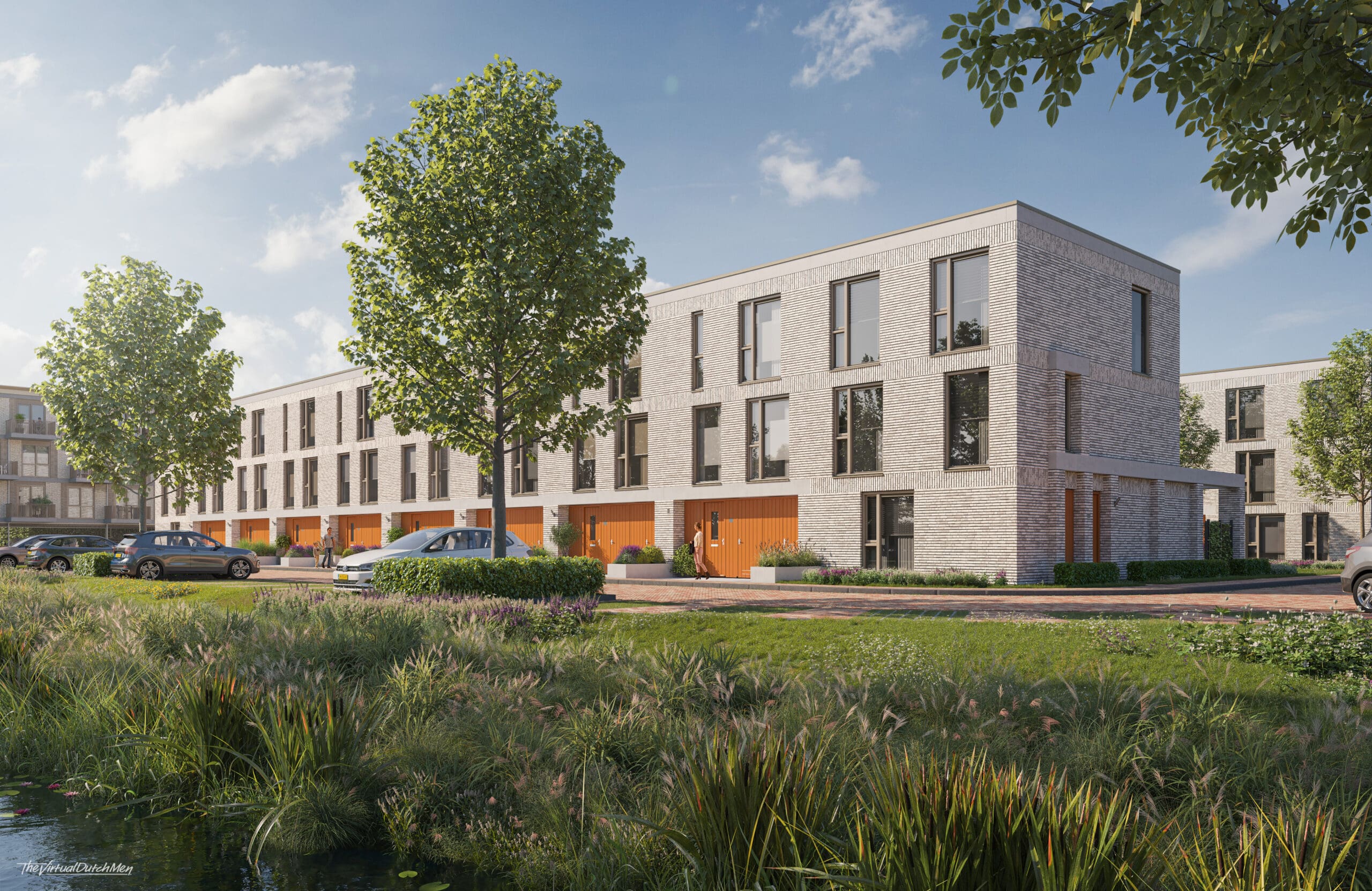 - Aandacht voor de aarde: een duurzame leefomgeving met inheemse beplanting, ruimte voor biodiversiteit en klimaatadaptief waterbeheer via wadi’s en groenvakken. De vergrote waterpartij draagt bij aan een toekomstbestendige wijk.