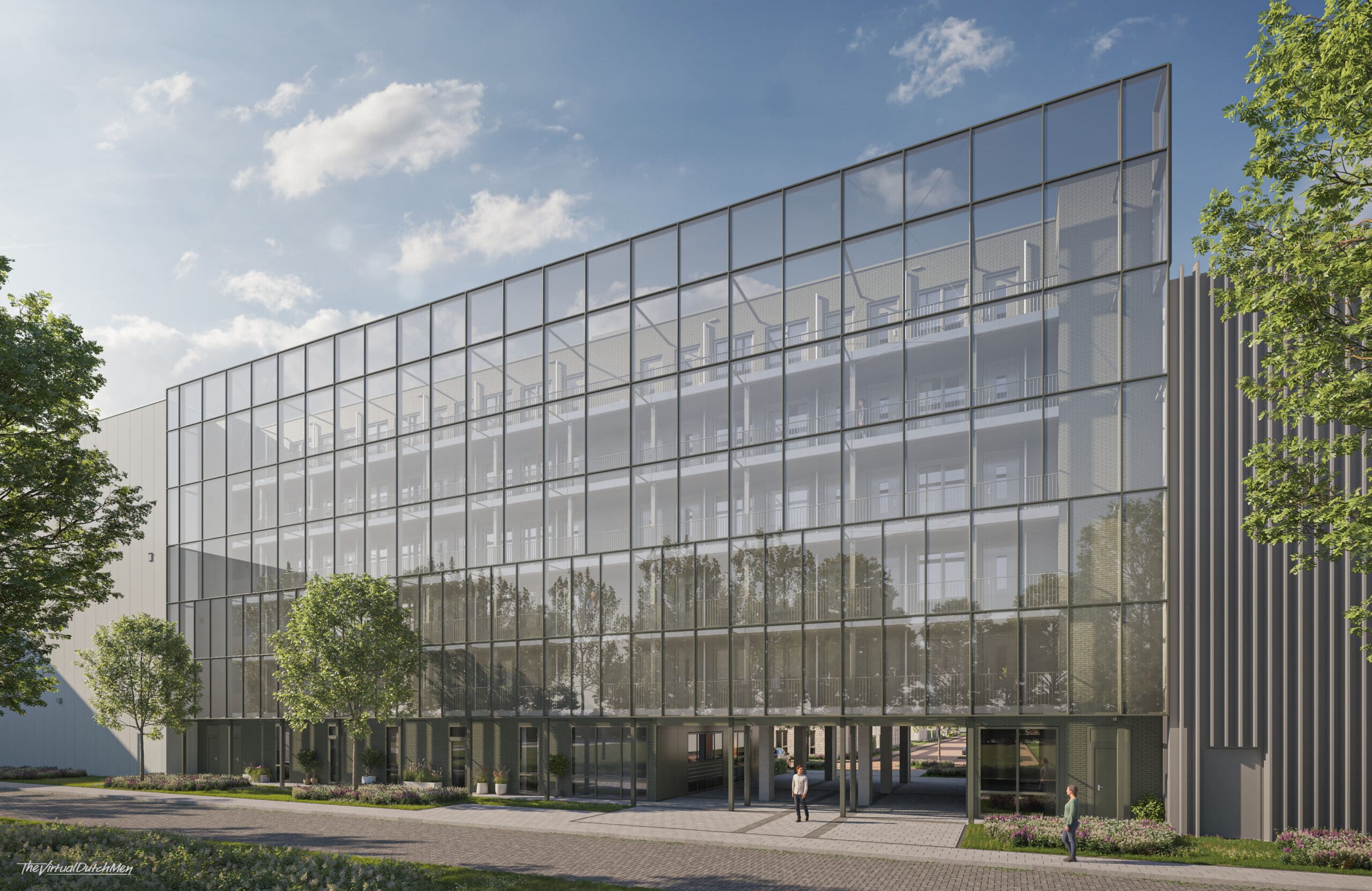 HoeveRijk biedt plaats aan 188 woningen met grote diversiteit in woningtypes. Voor Jutphaas Wonen realiseren we 116 sociale huurwoningen, verdeeld over twee gebouwen. Het eerste gebouw, ontworpen door A3 Architecten, omvat 66 ruime twee- en driekamerappartementen met een gemiddelde oppervlakte van 65 m² voor senioren en één- en tweepersoonshuishoudens. Het tweede woongebouw, ontworpen door Damast architects, bestaat uit 50 compacte studio’s en tweekamerappartementen van gemiddeld 38 m², ideaal voor jongeren en starters.