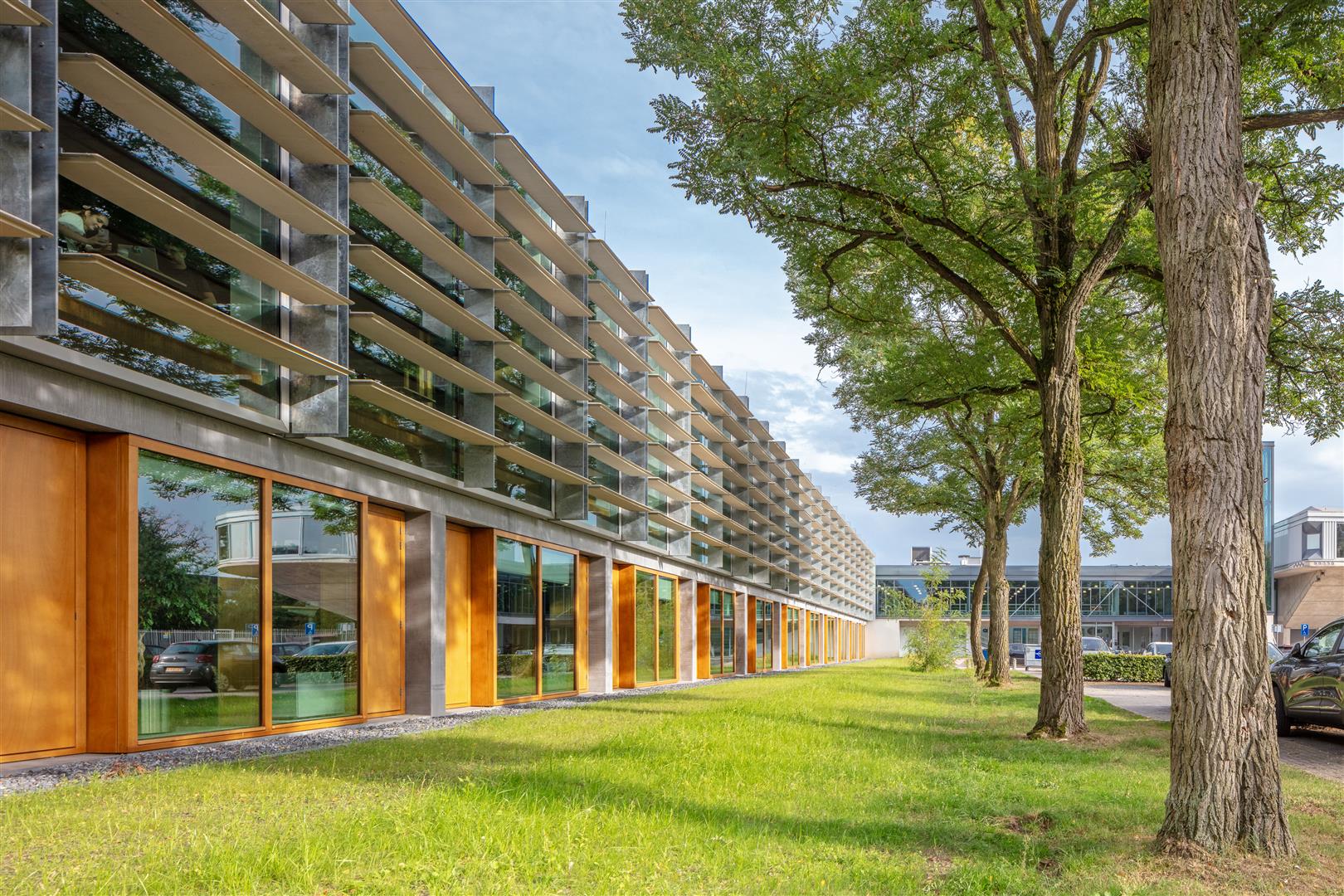 Het slim omgaan met bestaande eigenschappen legt de basis voor een beleefbaar duurzaam gebouw. De drie atria vormen kleine ecosystemen voor flora en fauna. De planten staan er in de volle grond, regenwater loopt van de glazen daken zo de vijvers in. Het dak heeft zonnepanelen en de bestaande zonwering is vanuit circulair oogpunt waar mogelijk hergebruikt. De zuidgevel is voorzien van horizontale zonwering om opwarming van het interieur in de zomer en beeldschermreflectie in de winter te voorkomen. Door de renovatie gaat gebouw Langezijds van energielabel G naar A+++.