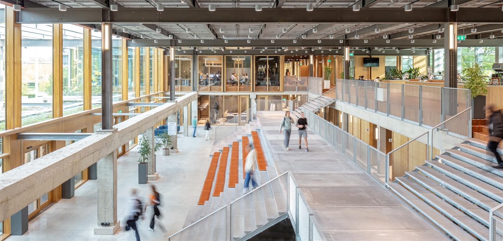 Kracht: transformatie, staal- en betonconstructies blijven in zicht, universiteitscampus, labelsprong