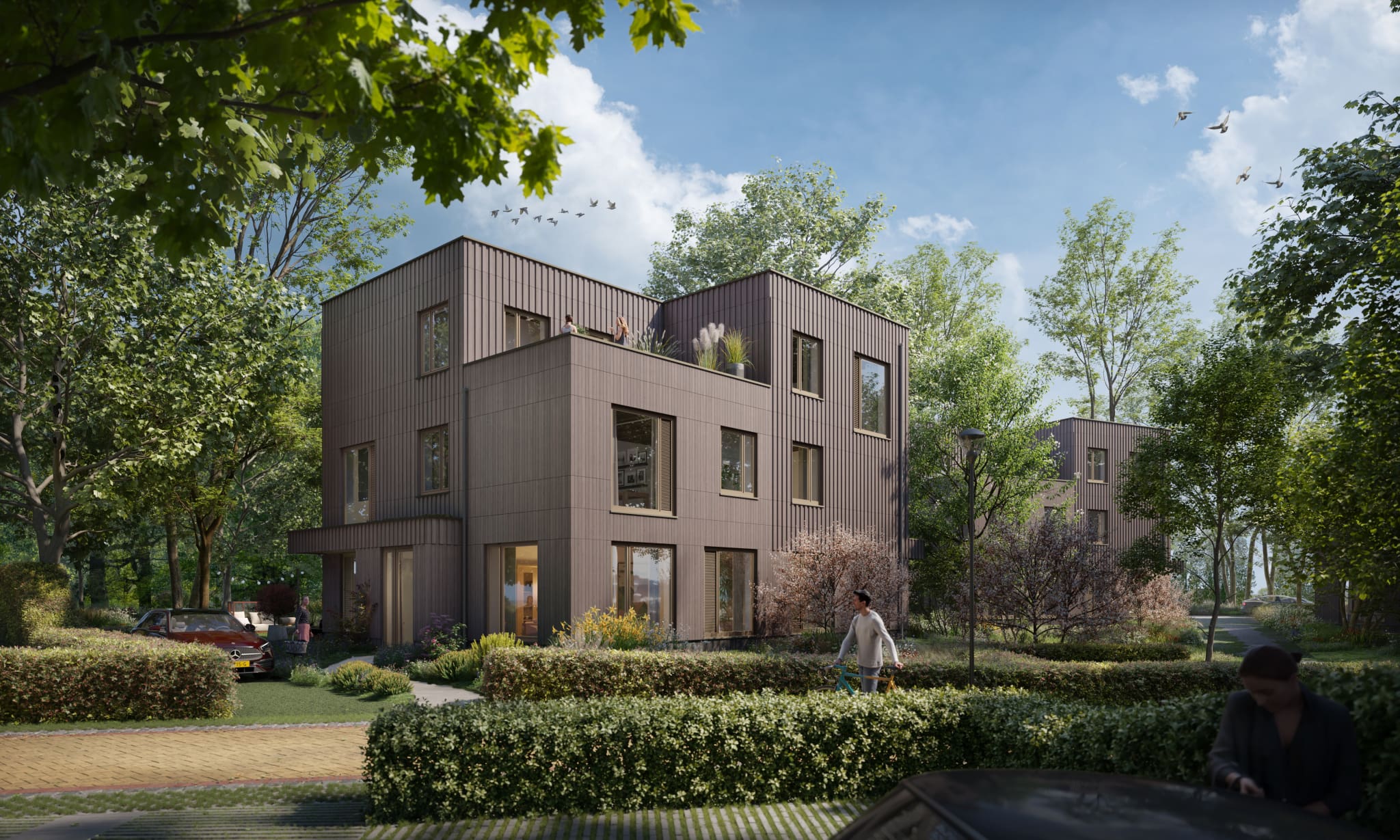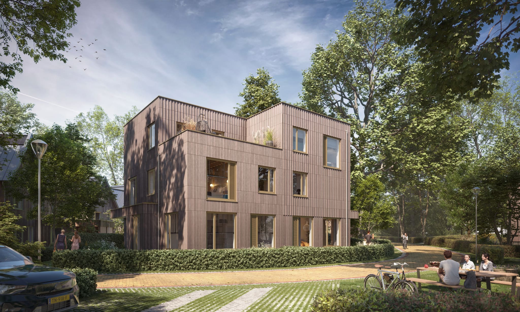 - Aandacht voor de aarde: energieneutrale woningen in duurzame houtbouw met wadi’s voor klimaatadaptie. Biobased materialen slaan CO₂ op in plaats van uit te stoten. Hoge luchtdichtheid zorgt voor laag energieverbruik.