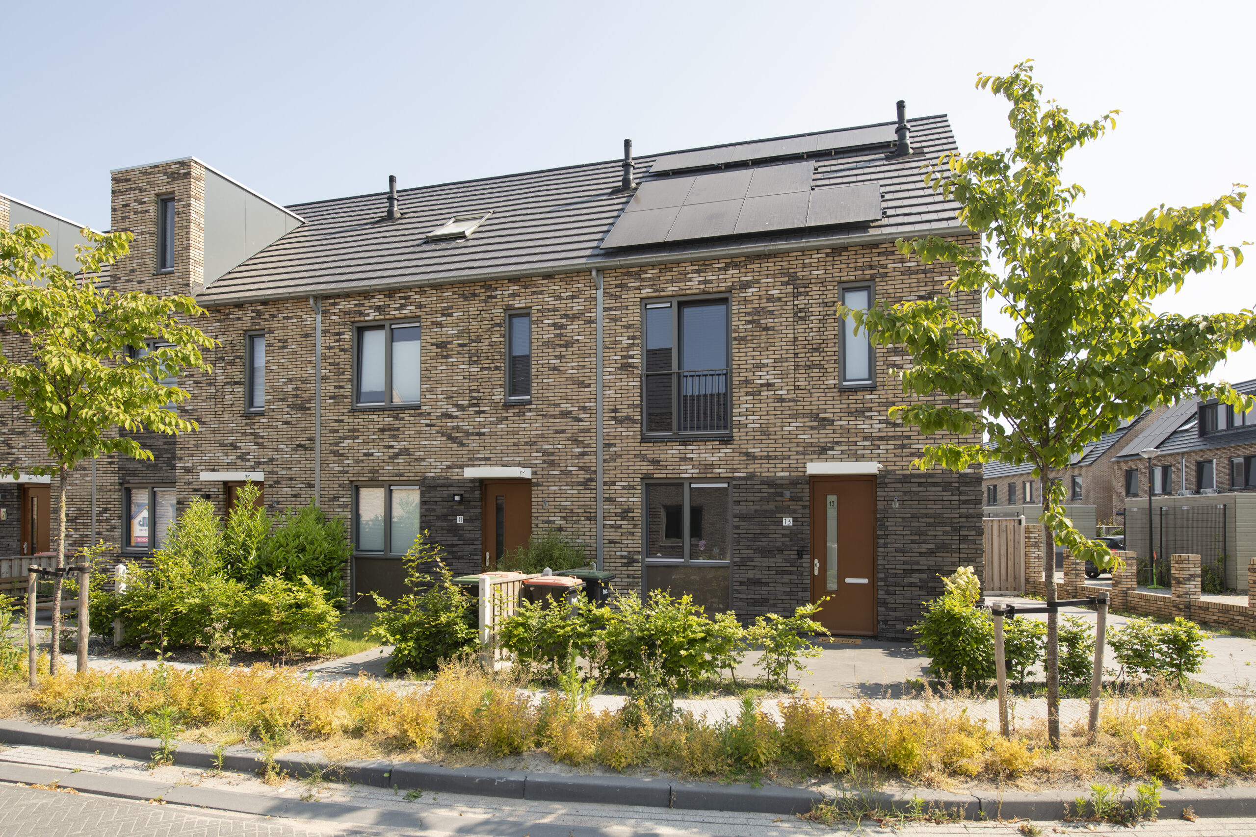 De woningen zijn gasloos en voorzien van stadsverwarming. Bovendien kan de koper er zelf voor kiezen om een extra duurzaamheidsstap te doen door te kiezen voor PV-panelen. Voor de woningen geldt een andere windbelasting dan standaard. Daardoor brengen we extra constructieve voorzieningen in de gevel aan, zoals extra wapening en dimensionering van balken.