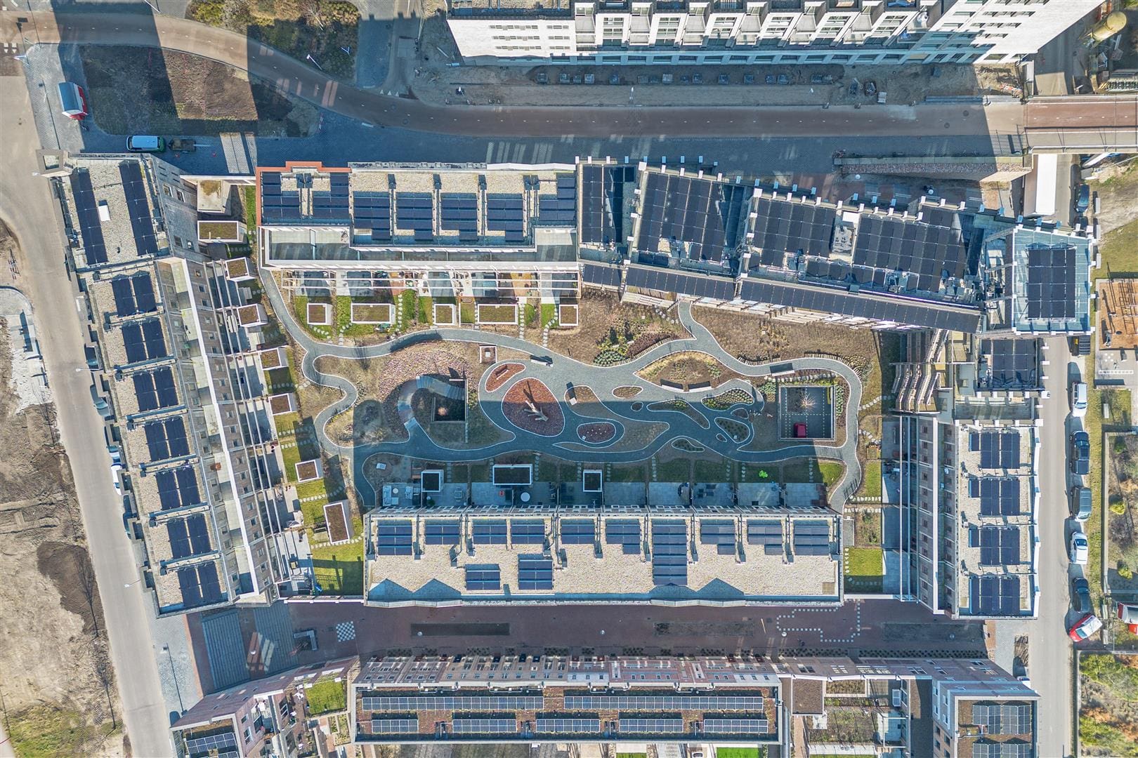 - Aandacht voor de aarde door een duurzame leefomgeving met aandacht voor natuurinclusiviteit en klimaatadaptiviteit door een collectieve binnentuin en inzet van onder meer PVT-panelen, smart deck, windturbine en deelmobiliteit.
