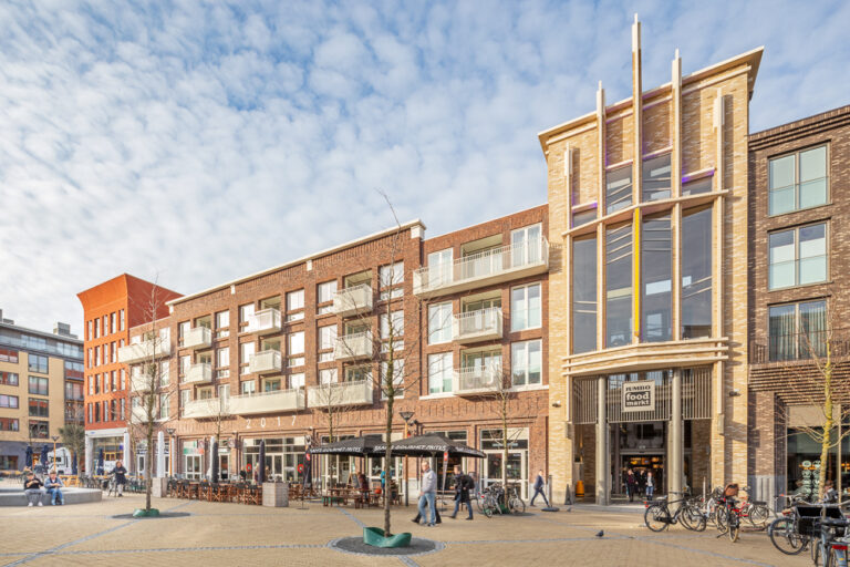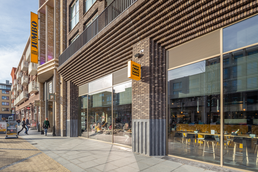 Een Jumbo foodmarket van 5.600m2 met een inpandige expeditiestraat heeft zich gehuisvest in de commerciële plint. Verder zijn hier een activiteitencentrum, een openbare fietsenstalling, avondhoreca, een traforuimte en diverse winkelunits. De parkeerkelder van ongeveer 8.500m2 sluit aan op een reeds gebouwde parkeerkelder met een totale oppervlakte circa 60.000m2. De bovenste lagen van het winkelcentrum bieden plaats aan appartementen. Het winkelcentrum is duurzaam, want de commerciële plint voldoet volledig aan BREEAM**.