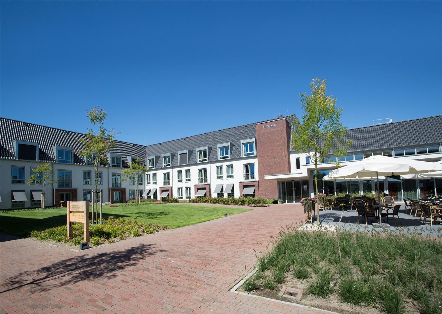 Hof en groene buitenruimte voor ontmoeting, overzicht en kleinschalige beleving. Integratie in bestaande bebouwing en omgeving van St. Elisabeth.