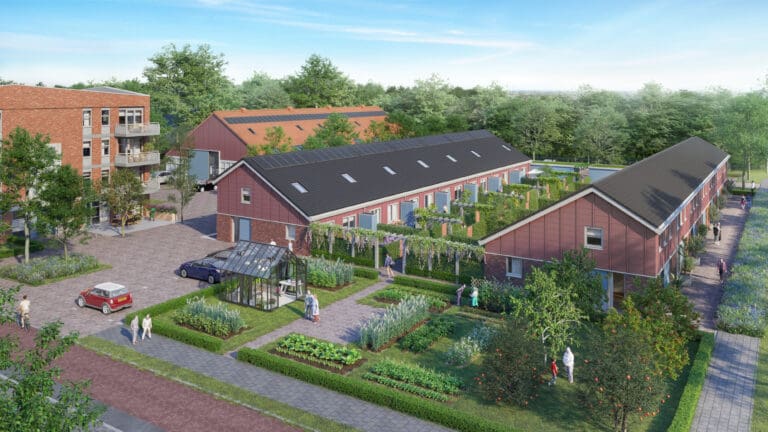 “Zuiderweide is ontworpen met respect voor de geschiedenis van het gebied. Ooit stond op deze plek een zogenaamde ontginningsschuur, gebouwd door de Rijksdienst voor de IJsselmeerpolders. Dit soort schuren speelden een cruciale rol in de ontwikkeling van Flevoland en vormden de inspiratie voor het ontwerp van ‘Het Erf’ in de nieuwe wijk. Het Erf is met zijn karakteristieke singel en geclusterde bebouwing opnieuw tot leven gebracht met eigentijdse architectuur.” Over de verdere ontwikkeling van de architectuur van de woningen vertellen Joris Molenaar en Gerben Jansen, van architectenbureau Molenaar & Co, graag meer. Klik hier om meer te weten over de filosofie achter het ontwerp.