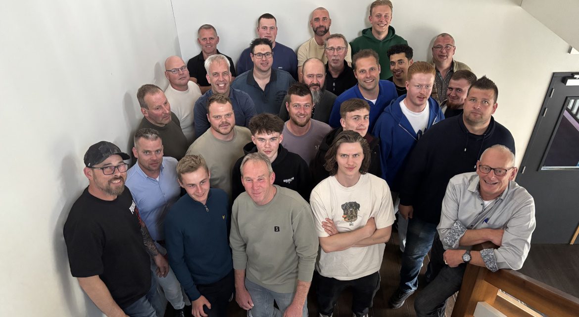 Bij Trebbe bouwen we samen aan geluk. Dat doen we vanuit ons meervoudig waardemodel door aandacht te hebben voor aarde, maatschappij, mens én continuïteit. En door niet alleen de geweldig mooie projecten die we ontwikkelen en bouwen, maar juist ook door te investeren in de mensen die onze projecten mogelijk maken. Daarom hebben 19 collega’s, van timmerman en tegelzetter tot uitvoerder, de opleiding tot leermeester gevolgd. Onlangs kwamen onze leermeesters samen met de leerlingcoördinator en hoofden Productie bijeen op het kantoor in Zwolle om hun ervaringen met elkaar te delen. Na afloop van deze jaarlijkse bijeenkomst voegden de leerling-timmermannen zich bij de groep om gezamenlijk te bowlen en te eten.