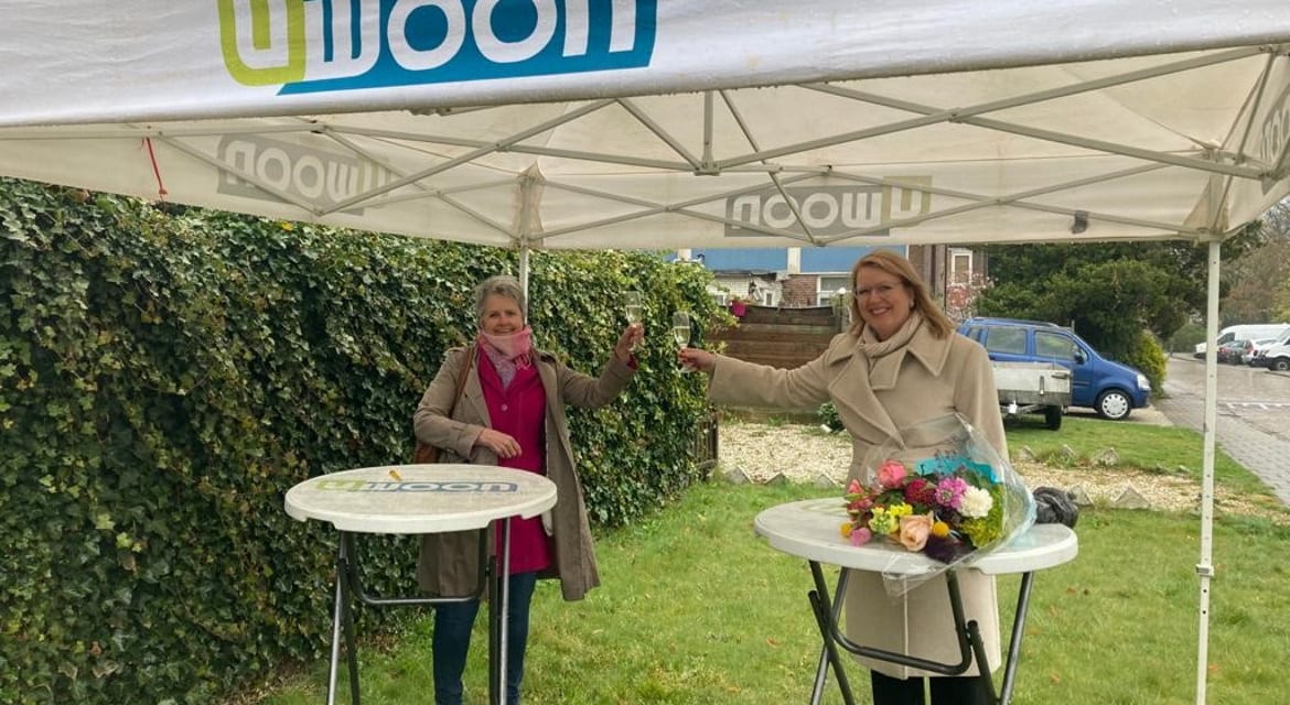 Na het ondertekenen van de overeenkomst markeerden UWOON-directeur Fleur Imming en Antje de Groot-Schuttert, directeur bij Trebbe symbolisch de start bouw. Dit deden zij door het bouwdoek gezamenlijk te onthullen. Antje de Groot-Schuttert, directeur bij Trebbe: “Wij vinden het fantastisch dat wij samen met UWOON de wijk Tinnegieter klaar mogen maken voor de toekomst. Voor ons is dit een prachtige, integrale opdracht waarbij wij de ontwikkeling, de bouw en bewonersbegeleiding voor onze rekening mogen nemen.”