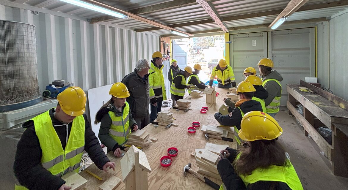 De kinderen kwamen in de vorm van een bliksemstage een ochtend meelopen met hoofduitvoerder Jan Vreeswijk om op deze manier kennis te maken met de bouwwereld. De ochtend begon met een presentatie over Trebbe en de bouwbranche, gevolgd door een quiz. Vervolgens nam Jan Vreeswijk de leerlingen mee voor een rondleiding over de bouwplaats. Bij De Wijert realiseert Trebbe 271 appartementen en 14 grondgebonden woningen voor woningcorporatie De Huismeesters. Met alle nieuwe indrukken in de broekzak, staken de leerlingen ook zelf hun handen nog uit de mouwen. In de zaagloods op de bouwplaats timmerden ze, onder leiding van de uitvoerder, twee timmerlieden en stagiair Paul, met veel enthousiasme een vogelhuis in elkaar.