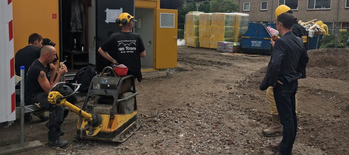 Marcel Bijkerk, kwaliteitscontroleur van de Alliantie: “Het hoogste punt is een mooie mijlpaal om toch eventjes bij stil te staan met de werknemers. Zij moeten het buiten allemaal wel waarmaken. In weer en wind en vorige week zelfs nog met 33 graden op de thermometer, werkten zij hier hard door. Ik kan als kwaliteitscontroleur, en omdat dit type woning elders in Amersfoort al is gebouwd, met een gerust hart zeggen dat de bewoners hier straks heel prettig gaan wonen.”